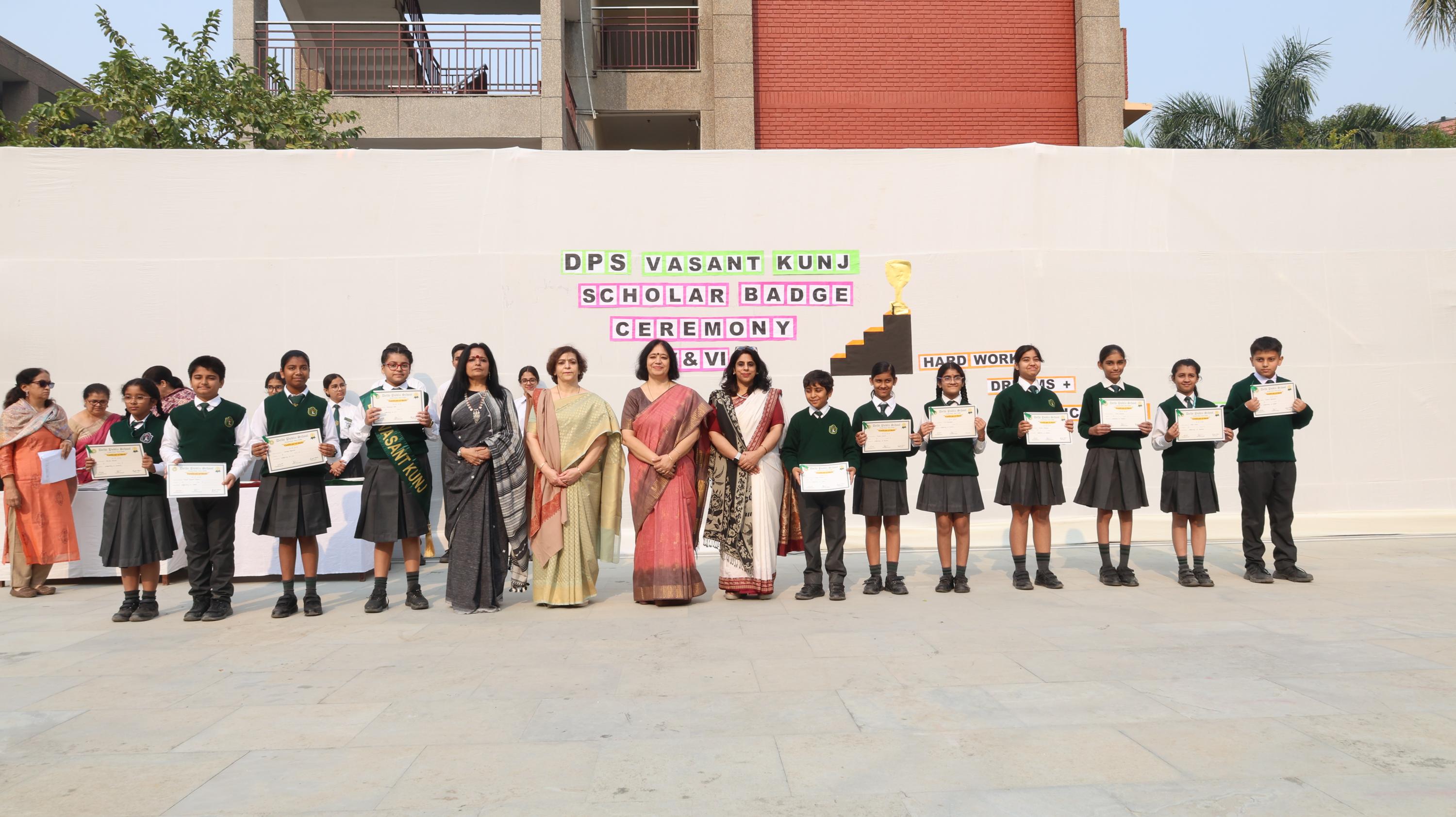 Delhi Public School, Vasant Kunj, celebrated academic excellence by felicitating approximately 750 meritorious students from Classes V to IX at its Scholar Badge Ceremony held on November 14 and 15, 2025.