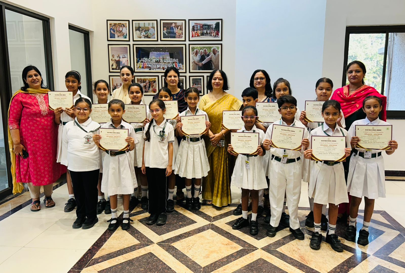 Aadya Jain (Class IV) and Lavit Dhawan (Class V) represented the school and competed against participants from 13 schools. Lavit Dhawan secured the Third Best Speaker Prize, bringing laurels to the school.