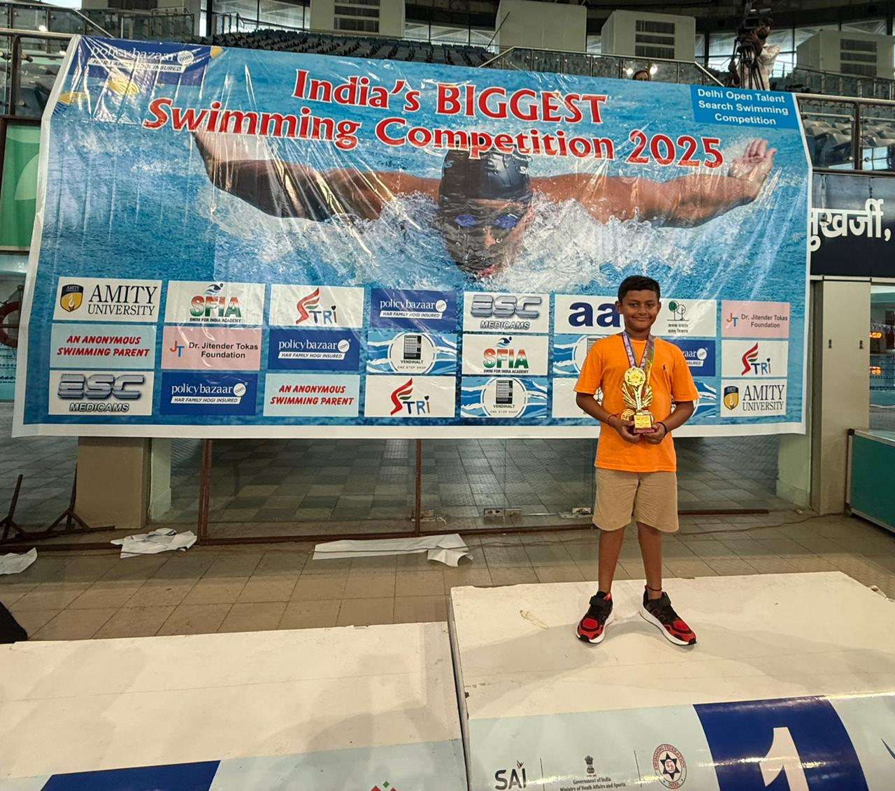Mehranshveer Singh Tokas of Class III represented Delhi Public School, Vasant Kunj, at the Delhi Open Talent Search Swimming Competition – 2025, held on 24th August 2025 at Dr. SPM Swimming Pool Complex, Talkatora Stadium, New Delhi. He brought laurels to the school by winning Gold Medals in both the 50 metres freestyle and 50 metres breaststroke and a Silver Medal in the freestyle relay. For his outstanding performance, he also won the Best Swimmer Trophy.