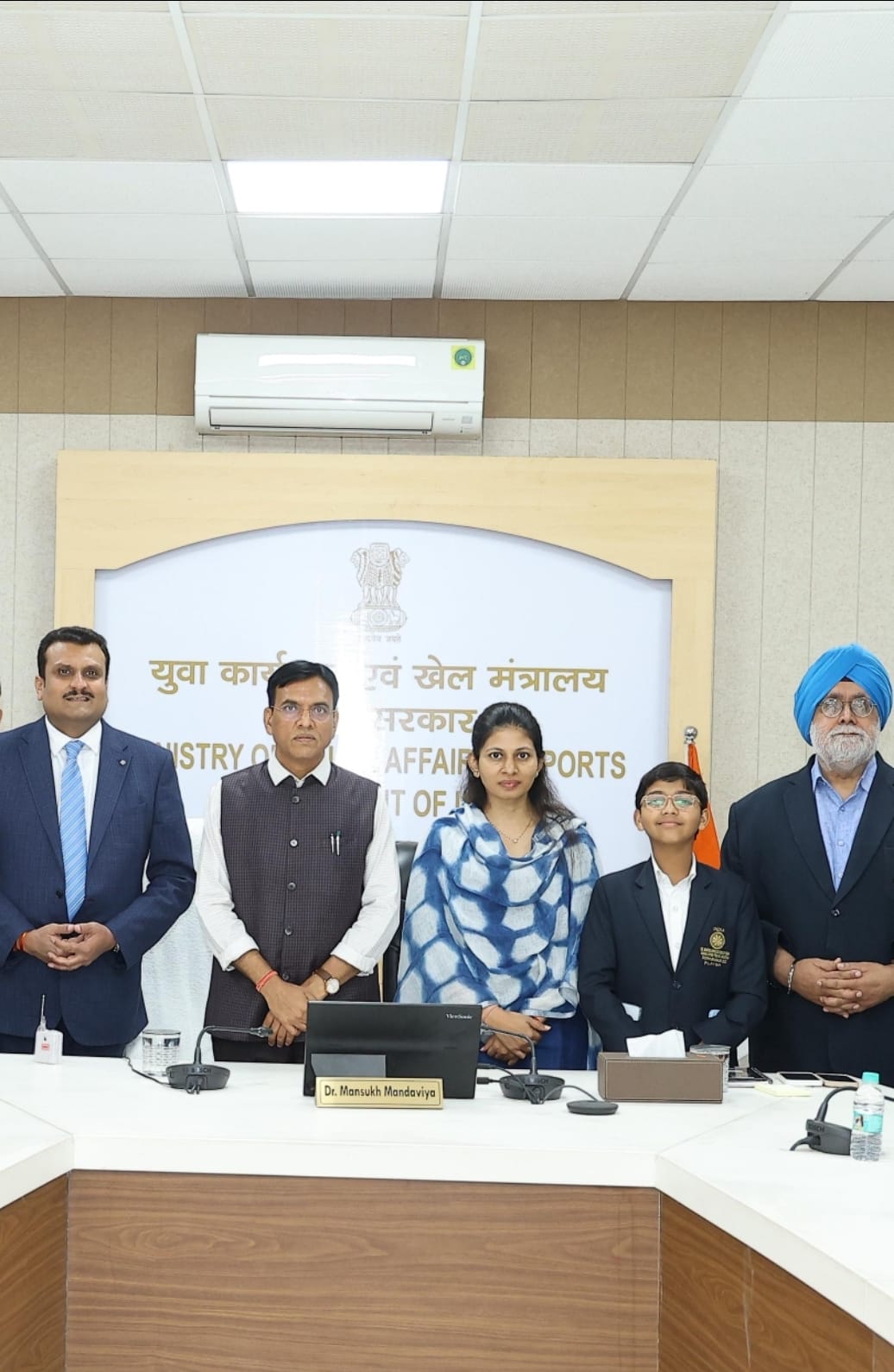 We are proud to share that Aarush Tiwari has been selected to represent India at the prestigious Asian Open Championship to be held in Manila from 31st July to 5th August. As a mark of recognition, Aarush was invited to a breakfast interaction with the Hon’ble Union Minister of Sports, Dr. Mansukh Mandaviya, at his residence, where he met fellow athletes chosen for the championship.