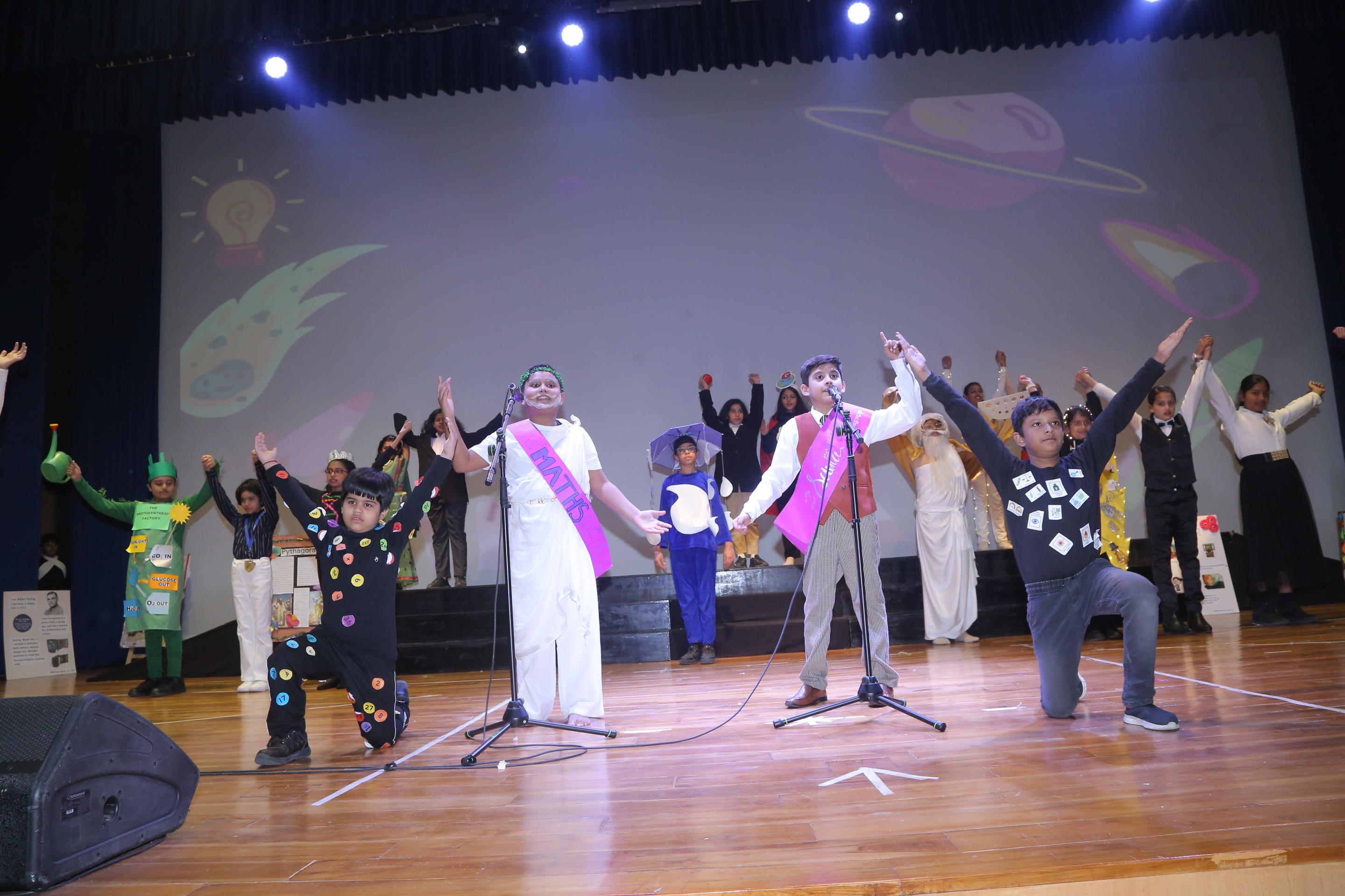 The event celebrated the prowess of mathematical genius and ability by way of photo booths, flash cards, mathematical models and quirky mathematical quotes that compelled attention. The highlight being the Mathematical and Funfinity Arcade boasting of stalls exhibiting a hands-on and experiential approach to learning mathematics, the fun way. In character with the event’s theme, the students also presented a cultural extravaganza. This cultural show, in addition to celebrating India’s impressive scientific heritage and temper, traced the journey of light across centuries thorough a skit, attacked the demon of “Pollution” and highlighted the urgent need for sustainable fashion.