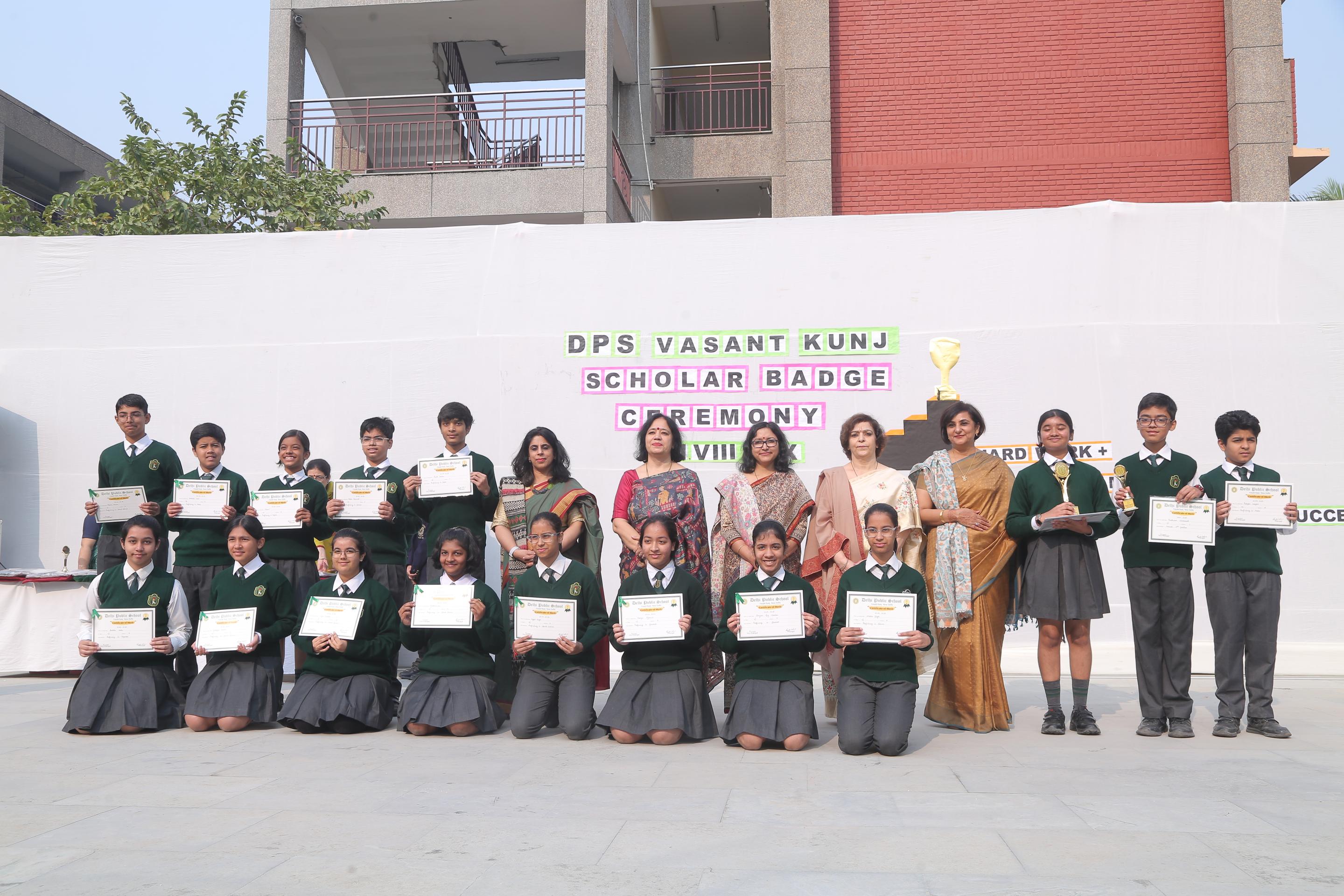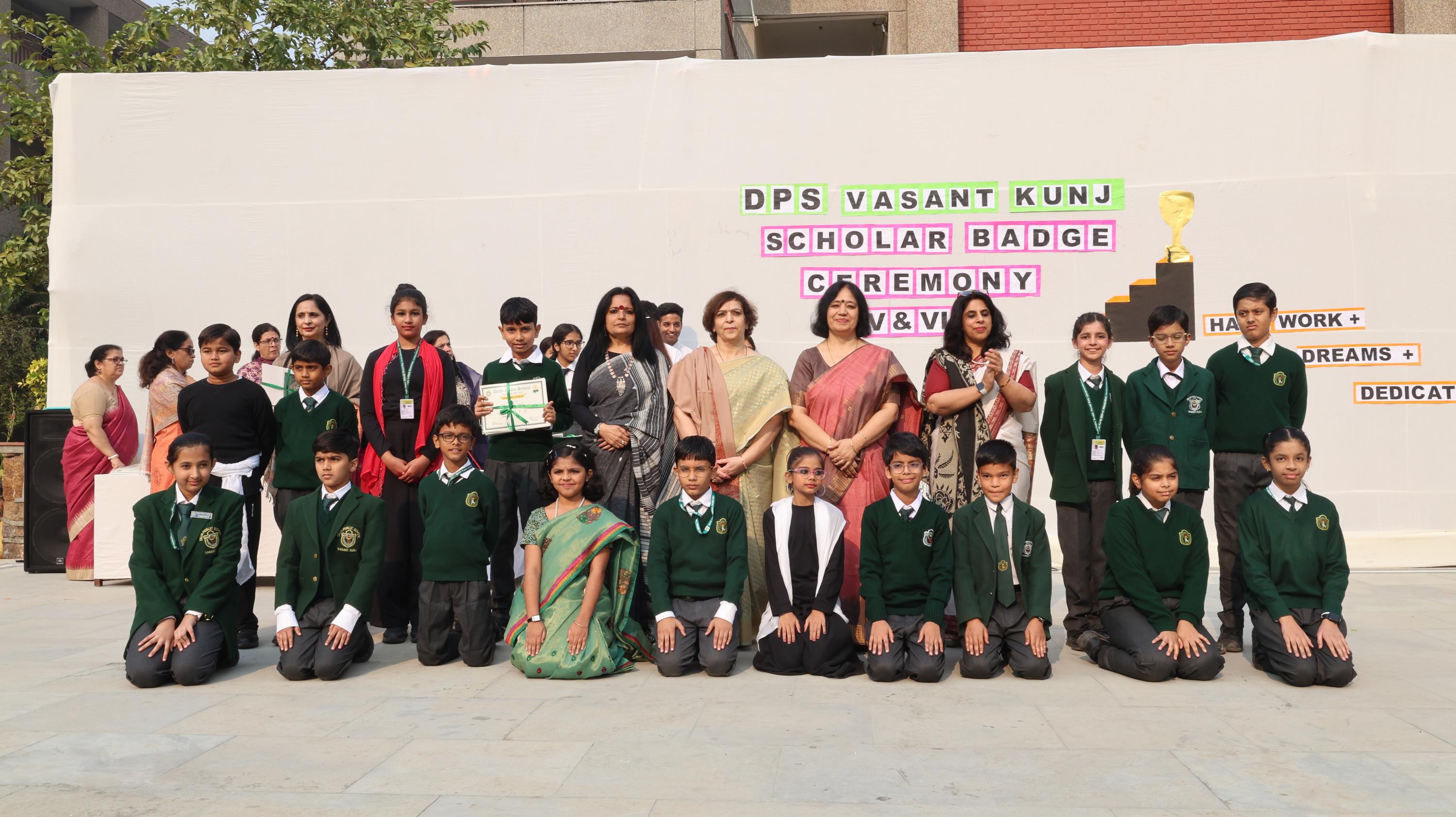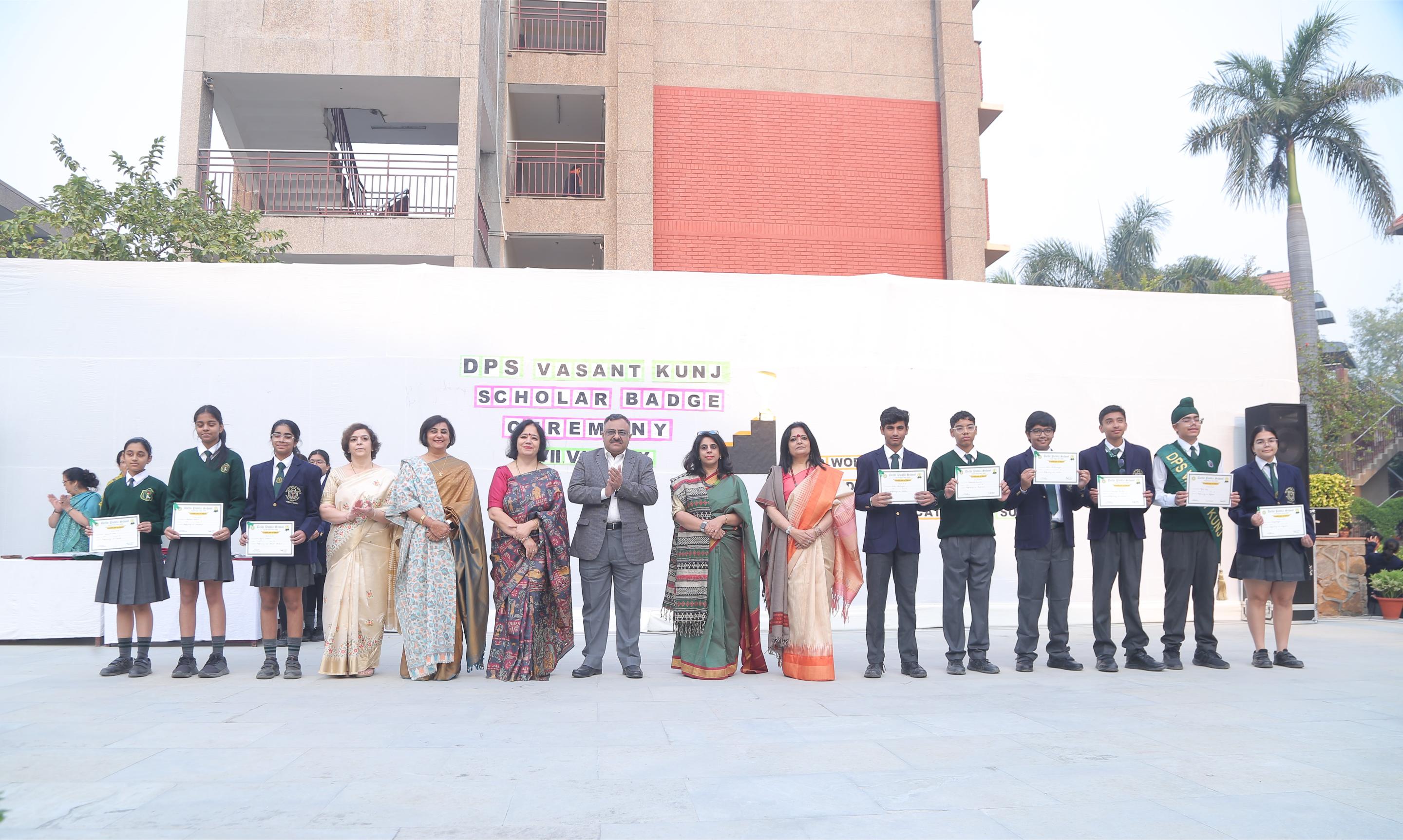 Delhi Public School, Vasant Kunj, celebrated academic excellence by felicitating approximately 750 meritorious students from Classes V to IX at its Scholar Badge Ceremony held on November 14 and 15, 2025.