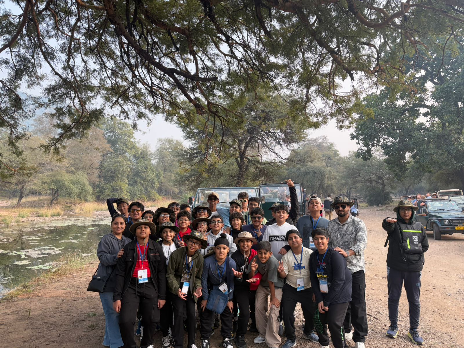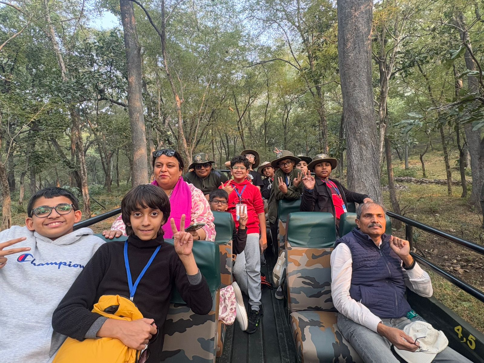 An educational trip to Ranthambore for the students of Class 7 was organized by Edterra for three days from 21stNovember to 23rd November,2025. 90 students accompanied by ten teachers and the members of Edterra embarked on the journey with great enthusiasm. 27 boys with 4 teachers stayed at Tiger Moon Resort and the stay for 63 girls was arranged at Ranthambore National Resort. The trip included a thrilling jungle safari where the children curiously watched the magnanimous animals in close proximity with delight. This was followed by a Documentary Screening session, a skit on ‘Save Tiger’, an interaction with a Naturalist at the resort which helped students understand the importance of conservation and wildlife. Pottery, Games and a live podcast made by some students helped foster team work and develop respect for nature. A visit to the Rajiv Gandhi Regional Museum of National History to learn about the extinct animals and Dastkar –an NGO, to create awareness of the traditional handicraft, was organized on Day two. The day concluded with a DJ dance and sumptuous buffet. With giggles and laughter, students carried unforgettable memories with a lot of learning gained from their experience.